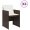 Chaises de jardin avec coussins lot de 4 marron résine tresséeDétendez-vous et profitez de l'extérieur dans ces confortables chaises de jardin ! Matériau durable : la résine tressée, également connue sous le nom de poly rotin, est un matériau synthétique solide et nécessitant peu d'entretien qui ressemble au rotin naturel. Il est léger, facile à nettoyer et couramment utilisé pour les meubles d'extérieur en raison de sa durabilité et de ses propriétés de résistance aux intempéries. Expérience d'assise confortable : ce mobilier d'extérieur, doté de coussins épais, offre une expérience d'assise confortable. Dossier rabattable : ces chaises sont dotées d'un dossier à rabat qui peut être rabattu pour un rangement compact. Housse amovible et lavable : ces coussins sont dotés de housses amovibles pour un lavage et un entretien faciles. Les housses de coussin de chaise ont un rabat à l'arrière pour une fixation facile aux chaises. Cadre robuste et stable : le cadre en acier enduit de poudre assure la solidité et la stabilité du meuble de jardin pour une utilisation quotidienne à l'extérieur. Bon à savoir : Pour que vos meubles d'extérieur restent beaux, nous vous recommandons de les protéger avec une housse imperméable. Maximum 110 kg par siège. Soyez conscient du risque de feux ouverts et d'autres sources de forte chaleur à proximité du produit. ,