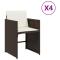 Chaises de jardin avec coussins lot de 4 marron résine tresséeDétendez-vous et profitez de l'extérieur dans ces confortables chaises de jardin ! Matériau durable : la résine tressée, également connue sous le nom de poly rotin, est un matériau synthétique solide et nécessitant peu d'entretien qui ressemble au rotin naturel. Il est léger, facile à nettoyer et couramment utilisé pour les meubles d'extérieur en raison de sa durabilité et de ses propriétés de résistance aux intempéries. Expérience d'assise confortable : ce mobilier d'extérieur, doté de coussins épais, offre une expérience d'assise confortable. Dossier rabattable : ces chaises sont dotées d'un dossier à rabat qui peut être rabattu pour un rangement compact. Housse amovible et lavable : ces coussins sont dotés de housses amovibles pour un lavage et un entretien faciles. Les housses de coussin de chaise ont un rabat à l'arrière pour une fixation facile aux chaises. Cadre robuste et stable : le cadre en acier enduit de poudre assure la solidité et la stabilité du meuble de jardin pour une utilisation quotidienne à l'extérieur. Bon à savoir : Pour que vos meubles d'extérieur restent beaux, nous vous recommandons de les protéger avec une housse imperméable. Maximum 110 kg par siège. Soyez conscient du risque de feux ouverts et d'autres sources de forte chaleur à proximité du produit. ,