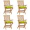 Chaises de jardin avec coussins vert vif lot de 4 Bois de teckCet ensemble de chaises de jardin en bois se compose de 4 pièces et est destiné à être un excellent supplément à votre jardin, terrasse ou patio. Vous pouvez vous détendre et discuter avec la famille et les amis ou profiter du bon temps. Fabriquée en bois dur de teck extrêmement durable, cette pièce de meuble en teck a été chevronnée, séchée au four puis finement poncée pour lui donner un aspect très lisse. Le bois de teck est connu pour sa résistance exceptionnelle aux intempéries, ce qui le rend bien plus adapté aux meubles de jardin que tout autre type de bois. Le bois de teck est le choix idéal si vous souhaitez acheter une pièce de meubles de jardin durable. La surface poncée est facile à nettoyer avec un chiffon humide. Ces chaises d'extérieur sont également légères, ce qui les rend complètement flexibles et faciles à déplacer. Les chaises en bois peuvent être pliées pour gagner de la place lorsqu'elles ne sont pas utilisées. De plus, les coussins de siège inclus bien rembourrés offrent également un confort d'assise supplémentaire. Maximum 110 kg par siège.
