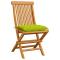 Chaises de jardin avec coussins vert vif lot de 6 Bois de teckCes chaises de jardin pliables en bois, au design simple pourtant élégant, sont conçues pour vous offrir une expérience d'assise confortable. Fabriquée en bois dur de teck extrêmement durable, cette pièce de meuble en teck a été chevronnée, séchée au four puis finement poncée pour lui donner un aspect très lisse. Le bois de teck est connu pour sa résistance exceptionnelle aux intempéries, ce qui le rend bien plus adapté aux meubles de jardin que tout autre type de bois. Le bois de teck est le choix idéal si vous souhaitez acheter un meuble de jardin durable. La surface poncée est facile à nettoyer avec un chiffon humide. Ces chaises de salle à manger de jardin sont également légères, ce qui les rend complètement flexibles et faciles à déplacer. Les chaises d'extérieur peuvent être facilement repliées lorsqu'elles ne sont pas utilisées. De plus, les coussins de siège bien rembourrés inclus offrent également un confort d'assise supplémentaire. Maximum 110 kg par siège.