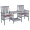 Chaises de jardin avec table à thé et coussins Acacia solideLaissez-vous emporter par une merveilleuse heure du thé avec ces chaises de jardin rustiques en bois avec table à thé. Elle apportera une touche vraiment conviviale et accrocheuse à votre jardin et terrasse. La table et les chaises sont en bois d'acacia massif, ce qui leur permet d'être extrêmement stables et robustes. Le dessus de table robuste et l'étagère inférieure sont idéaux pour ranger vos tasses, livres et autres petits objets. Et les dossiers et les accoudoirs des chaises garantissent une expérience d'assise reposante. De plus, les coussins ajoutent un confort supplémentaire. Chaque coussin comprend deux jeux de cordes pour le fixer fermement sur l'ensemble de bistro. Remarque : afin de prolonger la durée de vie des meubles d'extérieur, nous vous recommandons de les protéger avec une housse imperméable.