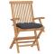 Chaises de jardin et coussins anthracite lot de 4 Bois de teckCet ensemble de chaises de jardin en bois se compose de 4 pièces et est destiné à être un excellent supplément à votre jardin, terrasse ou patio. Vous pouvez vous détendre et discuter avec la famille et les amis ou profiter du bon temps. Fabriquée en bois dur de teck extrêmement durable, cette pièce de meuble en teck a été chevronnée, séchée au four puis finement poncée pour lui donner un aspect très lisse. Le bois de teck est connu pour sa résistance exceptionnelle aux intempéries, ce qui le rend bien plus adapté aux meubles de jardin que tout autre type de bois. Le bois de teck est le choix idéal si vous souhaitez acheter une pièce de meubles de jardin durable. La surface poncée est facile à nettoyer avec un chiffon humide. Ces chaises d'extérieur sont également légères, ce qui les rend complètement flexibles et faciles à déplacer. Les chaises en bois peuvent être pliées pour gagner de la place lorsqu'elles ne sont pas utilisées. De plus, les coussins de siège inclus bien rembourrés offrent également un confort d'assise supplémentaire. Maximum 110 kg par siège. ,