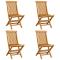 Chaises de jardin et coussins anthracite lot de 4 Bois de teckCes chaises de jardin pliables en bois, au design simple pourtant élégant, sont conçues pour vous offrir une expérience d'assise confortable. Fabriquée en bois dur de teck extrêmement durable, cette pièce de meuble en teck a été chevronnée, séchée au four puis finement poncée pour lui donner un aspect très lisse. Le bois de teck est connu pour sa résistance exceptionnelle aux intempéries, ce qui le rend bien plus adapté aux meubles de jardin que tout autre type de bois. Le bois de teck est le choix idéal si vous souhaitez acheter un meuble de jardin durable. La surface poncée est facile à nettoyer avec un chiffon humide. Ces chaises de salle à manger de jardin sont également légères, ce qui les rend complètement flexibles et faciles à déplacer. Les chaises d'extérieur peuvent être facilement repliées lorsqu'elles ne sont pas utilisées. De plus, les coussins de siège bien rembourrés inclus offrent également un confort d'assise supplémentaire. Maximum 110 kg par siège. ,