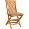 Chaises de jardin et coussins beige lot de 2 Bois teck massifCes chaises de jardin pliables en bois, au design simple pourtant élégant, sont conçues pour vous offrir une expérience d'assise confortable. Fabriquée en bois dur de teck extrêmement durable, cette pièce de meuble en teck a été chevronnée, séchée au four puis finement poncée pour lui donner un aspect très lisse. Le bois de teck est connu pour sa résistance exceptionnelle aux intempéries, ce qui le rend bien plus adapté aux meubles de jardin que tout autre type de bois. Le bois de teck est le choix idéal si vous souhaitez acheter un meuble de jardin durable. La surface poncée est facile à nettoyer avec un chiffon humide. Ces chaises de salle à manger de jardin sont également légères, ce qui les rend complètement flexibles et faciles à déplacer. Les chaises d'extérieur peuvent être facilement repliées lorsqu'elles ne sont pas utilisées. De plus, les coussins de siège bien rembourrés inclus offrent également un confort d'assise supplémentaire. Maximum 110 kg par siège. ,