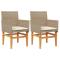 Chaises de jardin coussins lot de 2 beige résine tressée boisDétendez-vous et profitez de l'extérieur dans ces confortables chaises de jardin ! Matériau durable : la résine tressée, également connue sous le nom de poly rotin, est un matériau synthétique solide et nécessitant peu d'entretien qui ressemble au rotin naturel. Il est léger, facile à nettoyer et couramment utilisé pour les meubles d'extérieur en raison de sa durabilité et de ses propriétés de résistance aux intempéries. Expérience d'assise confortable : ce mobilier d'extérieur, doté de coussins épais, offre une expérience d'assise confortable. Housse amovible et lavable : ces coussins de siège sont dotés de housses amovibles pour un lavage et un entretien faciles. Cadre robuste et stable : le cadre en bois et en acier enduit de poudre assure la solidité et la stabilité du meuble de jardin pour une utilisation quotidienne à l'extérieur. Bon à savoir : Pour que vos meubles d'extérieur restent beaux, nous vous recommandons de les protéger avec une housse imperméable. Maximum 110 kg par siège. Soyez conscient du risque de feux ouverts et d'autres sources de forte chaleur à proximité du produit. ,
