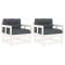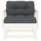 Chaises de jardin et coussins lot de 2 blanc bois de pin massifCes chaises de jardin en bois, qui se démarquent par leur design à lattes et leurs coussins moelleux, seront un excellent supplément à votre jardin, patio ou terrasse pour profiter d'un moment agréable avec votre famille ou vos amis. Bois de pin massif : le bois de pin massif est un matériau naturel magnifique. Le bois de pin a un grain droit et les noeuds donnent au matériau son aspect caractéristique et rustique. Cadre robuste et stable : le cadre en bois rend la chaise longue robuste et stable pour une utilisation quotidienne à l'extérieur. Expérience d'assise confortable : le dossier et l'accoudoir ajoutent un confort d'assise supplémentaire à la chaise d'extérieur. De plus, le coussin bien rembourré assure le confort de l'assise. Conception modulaire : la chaise de patio est flexible et facile à déplacer. Vous pouvez la combiner avec d'autres segments modulaires dans la boutique en ligne pour créer vos propres configurations d'ensemble de salon de jardin ! Bon à savoir : Pour que vos meubles d'extérieur restent beaux, nous vous recommandons de les protéger avec une housse imperméable. Maximum 110 kg par siège. ,