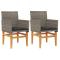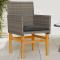 Chaises de jardin coussins lot de 2 gris résine tressée et boisDétendez-vous et profitez de l'extérieur dans ces confortables chaises de jardin ! Matériau durable : la résine tressée, également connue sous le nom de poly rotin, est un matériau synthétique solide et nécessitant peu d'entretien qui ressemble au rotin naturel. Il est léger, facile à nettoyer et couramment utilisé pour les meubles d'extérieur en raison de sa durabilité et de ses propriétés de résistance aux intempéries. Expérience d'assise confortable : ce mobilier d'extérieur, doté de coussins épais, offre une expérience d'assise confortable. Housse amovible et lavable : ces coussins de siège sont dotés de housses amovibles pour un lavage et un entretien faciles. Cadre robuste et stable : le cadre en bois et en acier enduit de poudre assure la solidité et la stabilité du meuble de jardin pour une utilisation quotidienne à l'extérieur. Bon à savoir : Pour que vos meubles d'extérieur restent beaux, nous vous recommandons de les protéger avec une housse imperméable. Maximum 110 kg par siège. Soyez conscient du risque de feux ouverts et d'autres sources de forte chaleur à proximité du produit. ,