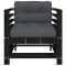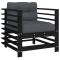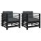 Chaises de jardin et coussins lot de 2 noir bois de pin massifCes chaises de jardin en bois, qui se démarquent par leur design à lattes et leurs coussins moelleux, seront un excellent supplément à votre jardin, patio ou terrasse pour profiter d'un moment agréable avec votre famille ou vos amis. Bois de pin massif : le bois de pin massif est un matériau naturel magnifique. Le bois de pin a un grain droit et les noeuds donnent au matériau son aspect caractéristique et rustique. Cadre robuste et stable : le cadre en bois rend la chaise longue robuste et stable pour une utilisation quotidienne à l'extérieur. Expérience d'assise confortable : le dossier et l'accoudoir ajoutent un confort d'assise supplémentaire à la chaise d'extérieur. De plus, le coussin bien rembourré assure le confort de l'assise. Conception modulaire : la chaise de patio est flexible et facile à déplacer. Vous pouvez la combiner avec d'autres segments modulaires dans la boutique en ligne pour créer vos propres configurations d'ensemble de salon de jardin ! Bon à savoir : Pour que vos meubles d'extérieur restent beaux, nous vous recommandons de les protéger avec une housse imperméable. Maximum 110 kg par siège. ,