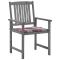 Chaises de jardin et coussins lot de 4 Gris Bois acacia massifDécorez votre extérieur avec ces chaises de jardin en bois à lattes, qui ajouteront une touche de charme rustique. Ces chaises de jardin sont en bois d'acacia massif, ce qui les rend robustes et stables. Les coussins ajoutent du confort supplémentaire. Chaque coussin comporte deux ensembles de cordes pour le fixer solidement sur la chaise d'extérieur. Maximum 110 kg par siège. ,