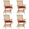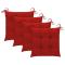 Chaises de jardin et coussins rouge lot de 4 Bois teck massifCet ensemble de chaises de jardin en bois se compose de 4 pièces et est destiné à être un excellent supplément à votre jardin, terrasse ou patio. Vous pouvez vous détendre et discuter avec la famille et les amis ou profiter du bon temps. Fabriquée en bois dur de teck extrêmement durable, cette pièce de meuble en teck a été chevronnée, séchée au four puis finement poncée pour lui donner un aspect très lisse. Le bois de teck est connu pour sa résistance exceptionnelle aux intempéries, ce qui le rend bien plus adapté aux meubles de jardin que tout autre type de bois. Le bois de teck est le choix idéal si vous souhaitez acheter une pièce de meubles de jardin durable. La surface poncée est facile à nettoyer avec un chiffon humide. Ces chaises d'extérieur sont également légères, ce qui les rend complètement flexibles et faciles à déplacer. Les chaises en bois peuvent être pliées pour gagner de la place lorsqu'elles ne sont pas utilisées. De plus, les coussins de siège inclus bien rembourrés offrent également un confort d'assise supplémentaire. Maximum 110 kg par siège.