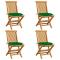 Chaises de jardin et coussins vert lot de 4 Bois de teck massifCes chaises de jardin pliables en bois, au design simple pourtant élégant, sont conçues pour vous offrir une expérience d'assise confortable. Fabriquée en bois dur de teck extrêmement durable, cette pièce de meuble en teck a été chevronnée, séchée au four puis finement poncée pour lui donner un aspect très lisse. Le bois de teck est connu pour sa résistance exceptionnelle aux intempéries, ce qui le rend bien plus adapté aux meubles de jardin que tout autre type de bois. Le bois de teck est le choix idéal si vous souhaitez acheter un meuble de jardin durable. La surface poncée est facile à nettoyer avec un chiffon humide. Ces chaises de salle à manger de jardin sont également légères, ce qui les rend complètement flexibles et faciles à déplacer. Les chaises d'extérieur peuvent être facilement repliées lorsqu'elles ne sont pas utilisées. De plus, les coussins de siège bien rembourrés inclus offrent également un confort d'assise supplémentaire. Maximum 110 kg par siège.