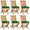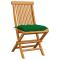 Chaises de jardin et coussins vert lot de 6 Bois de teck massifCes chaises de jardin pliables en bois, au design simple pourtant élégant, sont conçues pour vous offrir une expérience d'assise confortable. Fabriquée en bois dur de teck extrêmement durable, cette pièce de meuble en teck a été chevronnée, séchée au four puis finement poncée pour lui donner un aspect très lisse. Le bois de teck est connu pour sa résistance exceptionnelle aux intempéries, ce qui le rend bien plus adapté aux meubles de jardin que tout autre type de bois. Le bois de teck est le choix idéal si vous souhaitez acheter un meuble de jardin durable. La surface poncée est facile à nettoyer avec un chiffon humide. Ces chaises de salle à manger de jardin sont également légères, ce qui les rend complètement flexibles et faciles à déplacer. Les chaises d'extérieur peuvent être facilement repliées lorsqu'elles ne sont pas utilisées. De plus, les coussins de siège bien rembourrés inclus offrent également un confort d'assise supplémentaire. Maximum 110 kg par siège. ,