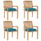 Chaises de jardin empilables avec coussins lot de 4 Teck solideAjoutez une touche de charme rustique à votre salle à manger, jardin ou terrasse avec cet ensemble de chaises de jardin empilables avec ensemble de coussins ! La chaise de salle à manger élève votre espace de vie intérieur ou extérieur à un niveau supérieur avec un design à lattes et élégant. Cet ensemble de meubles en teck est fabriqué à partir de bois dur de teck extrêmement durable et est chevronné, séché au four et poncé finement pour lui donner un aspect très lisse. Le bois de teck est connu pour sa solidité et sa résistance aux intempéries exceptionnelles, ce qui le rend bien plus adapté aux meubles de jardin que tout autre type de bois. Le bois de teck est le choix parfait si vous souhaitez acheter un meuble de jardin durable. Il est facile à entretenir et à nettoyer avec un chiffon humide. De plus, la chaise de salle à manger peut être empilée pour économiser de l'espace de stockage lorsqu'elle n'est pas utilisée. De plus, les coussins inclus offrent un confort supplémentaire. Chaque coussin a 2 jeux de cordes pour le fixer fermement sur la chaise. Remarque : afin de prolonger la durée de vie de vos meubles d'extérieur, nous vous recommandons de les nettoyer régulièrement et de ne pas les laisser à l'extérieur sans protection inutilement. Nettoyage : utiliser une solution savonneuse douce Stockage : si possible, stockez dans un endroit frais et sec à l'intérieur. Si le produit est stocké à l'extérieur, protégez-le avec une housse imperméable. Essuyez et séchez l'excès d'eau ou de neige des surfaces planes après la pluie ou une chute de neige. Permettez une circulation d'air suffisante afin d'éviter les dommages liés à l'humidité. Maximum 110 kg par siège.