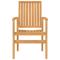 Chaises de jardin empilables lot de 2 56,5x57,5x91 cm bois teckCes chaises de jardin empilables en bois présentent un design classique et seront un excellent supplément à votre jardin, patio ou terrasse. Bois de teck durable : le bois de teck massif est un beau matériau naturel. Il a été chevronné, séché au four, puis sablé finement pour donner une apparence très lisse. Le bois de teck est connu pour sa résistance exceptionnelle et sa résistance aux intempéries. Expérience d'assise confortable : dotée d'accoudoirs et d'un dossier, la chaise de jardin vous offre le plus grand confort. Conception empilable : la chaise de jardin est empilable pour économiser de l'espace de stockage lorsqu'elle n'est pas utilisée. Bon à savoir : Pour que vos meubles d'extérieur restent beaux, nous vous recommandons de les protéger avec une housse imperméable. Maximum 110 kg par siège. ,