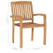 Chaises de jardin empilables lot de 4 Bois de teck solideAjoutez une touche de charme rustique à votre salle à manger, jardin ou terrasse avec cet ensemble de chaises de jardin empilables ! La chaise de salle à manger élève votre espace de vie intérieur ou extérieur à un niveau supérieur avec un design à lattes et élégant. Cet ensemble de meubles en teck est construit en bois de teck extrêmement durable et est assaisonné, séché au four et poncé fin pour donner un aspect très lisse. Le bois de teck est connu pour sa résistance et sa résistance aux intempéries exceptionnelles, ce qui le rend beaucoup plus adapté aux meubles de jardin que tout autre type de bois. Le bois de teck est le choix parfait si vous souhaitez acheter un meuble de jardin durable. Il est facile à entretenir et à nettoyer avec un chiffon humide. De plus, la chaise de salle à manger peut être empilée pour économiser de l'espace de stockage lorsqu'elle n'est pas utilisée. Remarque : afin de prolonger la durée de vie des meubles d'extérieur, nous vous recommandons de les protéger avec une housse imperméable. Maximum 110 kg par siège. ,