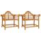 Chaises de jardin lot de 2 91x62x94 cm Bois de teck solideCes chaises de jardin au design unique, communément appelé "chaises Marlboro"; seront vraiment un excellent supplément à votre jardin, arrière-cour et autres lieux de vie en plein air ! Bois de teck durable : fabriquées à partir de bois dur de teck extrêmement durable, ces chaises ont été chevronnées, séchées au four puis poncées finement pour leur donner un aspect très lisse. Le bois de teck est connu pour sa solidité exceptionnelle et sa résistance aux intempéries. Expérience d'assise confortable : la chaise de jardin comprend des accoudoirs et un dossier, offrant une expérience d'assise confortable. Design élégant : le design classique et exquis de la chaise de patio apportera une touche de charme unique à votre espace de vie extérieur. Bon à savoir : Pour faciliter au maximum le montage, chaque produit est livré avec des instructions. Remarque : Pour que vos meubles d'extérieur restent beaux, nous vous recommandons de les protéger avec une housse imperméable. Maximum 110 kg par siège. ,