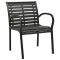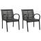 Chaises de jardin lot de 2 Acier et WPC NoirCet ensemble de chaises de jardin est une excellente solution pour vous asseoir dans votre jardin, sur votre patio et tout espace de vie extérieur. Cette chaise d'extérieur combine un cadre en acier et des lattes en WPC, ce qui la rend résistante aux intempéries, durable et adaptée à un usage extérieur. Les chaises sont dotées d'un design épuré et industriel, ajoutant une touche de style à votre jardin ou à votre patio. Les chaises de jardin sont faciles à nettoyer et à entretenir. De plus, elles peuvent être empilées pour économiser de l'espace lorsqu'elles ne sont pas utilisées. Maximum 110 kg par siège.