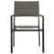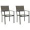 Chaises de jardin lot de 2 Textilène acier Gris et anthraciteLa chaise de jardin a un design élégant et intemporel et est censée être le point de mire dans votre jardin ou sur la terrasse. Le fauteuil confortable a une construction en acier enduit de poudre, ce qui le rend robuste, résistant à la rouille et aux intempéries. Grâce au tissu en textilène fort, la chaise d'extérieur est bien ventilée et sèche rapidement. Le siège et le dossier rembourrés vous offrent une expérience utilisateur relaxante et meilleure. La chaise d'extérieur est légère et facile à déplacer avec la poignée. De plus, les chaises peuvent être empilées pour économiser de l'espace lorsqu'elles ne sont pas utilisées. Remarque : Afin de prolonger la durée de vie de vos meubles d'extérieur, nous vous recommandons de les nettoyer régulièrement et de ne pas les laisser à l'extérieur sans protection inutilement. Nettoyage : Utiliser une solution savonneuse douce. Stockage : Si possible, stockez dans un endroit frais et sec à l'intérieur. Si le produit est stocké à l'extérieur, protégez-le avec une housse imperméable. Essuyez et séchez l'excès d'eau ou de neige des surfaces planes après la pluie ou une chute de neige. Permettez une circulation d'air suffisante afin d'éviter les dommages liés à l'humidité. Maximum 110 kg par siège. Soyez conscient du risque de feux ouverts et d'autres sources de forte chaleur à proximité du produit. ,