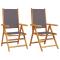 Chaises de jardin lot de 2 anthracite bois acacia massif tissuDétendez-vous et profitez de l'extérieur dans ces confortables chaises de jardin ! Robuste et stable : le bois d'acacia massif est connu pour sa solidité et sa durabilité. Ses couleurs variées et ses grains uniques lui confèrent un aspect attrayant. Sa stabilité et sa résistance aux intempéries en font un matériau idéal pour la fabrication de meubles d'intérieur et d'extérieur. Fonction d'inclinaison : le siège de jardin est spécialement conçu avec une fonction d'inclinaison afin que vous puissiez régler le dossier selon votre confort. Facile à transporter et à ranger : la chaise peut être facilement pliée lorsqu'elle n'est pas utilisée, pour un rangement et un transport faciles. Conception pratique : la main courante en bois, pratique et plate, vous permet de poser vos mains dessus tout en profitant d'un moment en plein air. Diverses utilisations : la chaise pliable a un large éventail d'utilisations et peut facilement répondre à vos besoins dans n'importe quel environnement extérieur, comme les jardins, les patios, les balcons, etc. Bon à savoir : Pour que vos meubles d'extérieur restent beaux, nous vous recommandons de les protéger avec une housse imperméable. Maximum 110 kg par siège. ,