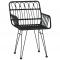 Chaises de jardin lot de 2 avec accoudoir Noir 56x64x80 cmProfitez de votre temps libre et détendez-vous sur ces chaises de jardin élégantes. Elles conviennent parfaitement à votre jardin, balcon et terrasse. Matériau résistant aux UV : la chaise est fabriquée en rotin PE, ce qui la rend résistante aux UV et offre une longue durée de vie. Cadre robuste et stable : les cadres en acier assurent robustesse et stabilité. Assise confortable : la chaise de salle à manger est conçue avec un dossier et des accoudoirs pour vous offrir une expérience d'assise confortable. Support de pied pratique : la chaise de salle à manger est équipée d'un support de pied, qui lui permet de se tenir plus fermement au sol. Remarque : Afin de prolonger la durée de vie de votre mobilier d'extérieur, nous vous recommandons de le protéger avec une housse imperméable. Chaque produit est livré avec un manuel de montage dans la boîte pour un montage facile. Maximum 110 kg par siège.