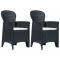 Chaises de jardin lot de 2 avec coussin Anthracite PlastiqueNos chaises de jardin en plastique seront un excellent supplément à votre jardin, terrasse ou patio. Les chaises de salle à manger d'extérieur sont en plastique durable, ce qui les rend résistantes aux intempéries et faciles à nettoyer. Leur design à l'aspect du rotin ajoute une touche de charme naturel à votre espace de vie extérieur. Les chaises de jardin sont légères et faciles à déplacer. Ces chaises de jardin sont faciles à assembler. La livraison comprend 2 chaises en plastique et 2 coussins de siège. Maximum 110 kg par siège. Soyez conscient du risque de feux ouverts et d'autres sources de forte chaleur à proximité du produit.