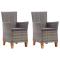 Chaises de jardin lot de 2 avec coussins Résine tressée GrisCes chaises de jardin en résine tressée avec des pieds en bois d'acacia massif, combinant à la fois vogue et fonction, seront le point de mire de votre jardin, patio ou terrasse. Les chaises de jardin sont fabriquées en résine tressée résistante à l'eau et sans entretien, ce qui les rend faciles à nettoyer avec un chiffon humide et parfait pour une utilisation en plein air. Grâce à leurs cadres en acier, ces chaises sont considérablement stables et sûres. De plus, les coussins de siège épais et amovibles sont très confortables. La livraison inclut 2 chaises en résine tressée. Remarque : Nous vous recommandons de couvrir les chaises pendant la pluie, la neige et le gel. Maximum 110 kg par siège. Soyez conscient du risque de feux ouverts et d'autres sources de forte chaleur à proximité du produit.