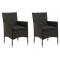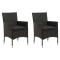 Chaises de jardin lot de 2 avec coussins Résine tressée NoirDînez avec les membres de votre famille ou profitez simplement du temps dans votre espace extérieur avec cet ensemble de chaises de jardin. La chaise d'extérieur est fabriquée à partir d'un solide cadre en acier enduit de poudre, ce qui la rend robuste et stable pour des années de détente. Le fauteuil recouvert de résine tressée est facile à nettoyer avec un chiffon humide et convient à une utilisation quotidienne à l'extérieur. De plus, le coussin d'assise bien rembourré ajoute un confort supplémentaire à la chaise. Remarque : afin de prolonger la durée de vie de vos meubles d'extérieur, nous vous recommandons de les nettoyer régulièrement et de ne pas les laisser à l'extérieur sans protection inutilement.Nettoyage : Utiliser une solution savonneuse douce.Stockage : si possible, stockez dans un endroit frais et sec à l'intérieur. Si le produit est stocké à l'extérieur, protégez-le avec une housse imperméable. Essuyez et séchez l'excès d'eau ou de neige des surfaces planes après la pluie ou une chute de neige. Permettez une circulation d'air suffisante afin d'éviter les dommages liés à l'humidité. Maximum 110 kg par siège. Soyez conscient du risque de feux ouverts et d'autres sources de forte chaleur à proximité du produit.