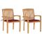 Chaises de jardin lot de 2 avec coussins bordeaux Teck massifCes chaises de jardin en bois ajoutent un aspect vintage à votre jardin, patio ou tout autre espace de vie extérieur. Fabriquée en bois dur de teck extrêmement durable, cette pièce de meuble en teck a été chevronnée, séchée au four puis finement poncée pour lui donner un aspect très lisse. Le bois de teck est connu pour sa résistance exceptionnelle aux intempéries, ce qui le rend bien plus adapté aux meubles de jardin que tout autre type de bois. Le bois de teck est le choix idéal si vous souhaitez acheter un meuble de jardin durable. L'ensemble de chaises d'extérieur comprend des dossiers à lattes et des accoudoirs légèrement incurvés, offrant un confort d'assise supplémentaire. Elles sont également empilables pour économiser de l'espace lorsqu'elles ne sont pas utilisées. Les coussins inclus sont pratiques et ont une fonction décorative. Maximum 110 kg par siège.