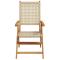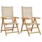 Chaises de jardin lot de 2 beige bois massif d'acacia et rotinDétendez-vous et profitez de l'extérieur dans ces confortables chaises de jardin !Robuste et stable : le bois d'acacia massif est connu pour sa solidité et sa durabilité. Ses couleurs variées et ses grains uniques lui confèrent un aspect attrayant. Sa stabilité et sa résistance aux intempéries en font un matériau idéal pour la fabrication de meubles d'intérieur et d'extérieur.Matériau durable : la résine tressée, également connue sous le nom de poly rotin, est un matériau synthétique solide et nécessitant peu d'entretien qui ressemble au rotin naturel. Il est léger, facile à nettoyer et couramment utilisé pour les meubles d'extérieur en raison de sa durabilité et de ses propriétés de résistance aux intempéries.Fonction d'inclinaison : le siège de jardin est spécialement conçu avec une fonction d'inclinaison afin que vous puissiez régler le dossier selon votre confort.Facile à transporter et à ranger : la chaise peut être facilement pliée lorsqu'elle n'est pas utilisée, pour un rangement et un transport faciles.Conception pratique : la main courante en bois, pratique et plate, vous permet de poser vos mains dessus tout en profitant d'un moment en plein air.Bon à savoir :Pour que vos meubles d'extérieur restent beaux, nous vous recommandons de les protéger avec une housse imperméable. Maximum 110 kg par siège.
