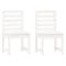 Chaises de jardin lot de 2 blanc 50x48x91,5 cm bois massif pinCes chaises de jardin en bois sont idéales pour dîner, lire et vous détendre en famille ou entre amis. Bois de pin solide : ces chaises de terrasse sont fabriquées en bois de pin solide. Le bois de pin solide est un beau matériau naturel. Le bois de pin a un grain droit et les noeuds donnent au matériau son aspect caractéristique et rustique. Cadre en bois stable : le cadre en bois de la chaise d'extérieur garantit sa robustesse et sa stabilité. Design pratique : vous pouvez placer la chaise dans le jardin ou sur votre terrasse extérieure pour profiter de bons livres et d'une tasse de café. Remarque : Afin de prolonger la durée de vie de votre mobilier d'extérieur, nous vous recommandons de le protéger avec une housse imperméable. Bon à savoir : Pour faciliter au maximum le montage, chaque produit est livré avec des instructions. Maximum 110 kg par siège.