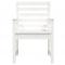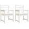 Chaises de jardin lot de 2 blanc 60x48x91 cm bois massif de pinCes chaises de jardin en bois sont idéales pour dîner, lire et vous détendre en famille ou entre amis. Bois de pin solide : ces chaises de terrasse sont fabriquées en bois de pin solide. Le bois de pin solide est un beau matériau naturel. Le bois de pin a un grain droit et les noeuds donnent au matériau son aspect caractéristique et rustique. Cadre en bois stable : le cadre en bois de la chaise d'extérieur garantit sa robustesse et sa stabilité. Design pratique : vous pouvez placer la chaise dans le jardin ou sur votre terrasse extérieure pour profiter de bons livres et d'une tasse de café. Remarque : Afin de prolonger la durée de vie de votre mobilier d'extérieur, nous vous recommandons de le protéger avec une housse imperméable. Bon à savoir : Pour faciliter au maximum le montage, chaque produit est livré avec des instructions. Maximum 110 kg par siège.