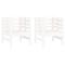 Chaises de jardin lot de 2 blanc 61,5x53x71 cm bois pin massifCes chaises de jardin en bois complèteront à merveille votre jardin, patio ou terrasse, vous permettant de passer des moments agréables avec votre famille ou vos amis. Bois de pin massif : le siège de jardin est fabriqué en bois de pin massif pour plus de robustesse et de stabilité. Le bois de pin solide est un beau matériau naturel. Le bois de pin a un grain droit et les noeuds donnent au matériau son aspect caractéristique et rustique. Une expérience d'assise confortable : dotée d'accoudoirs et d'un dossier, la chaise d'extérieur vous offre un confort optimal. Design à lattes : le design à lattes de la chaise de jardin en bois empêche l'accumulation de l'eau, ce qui permet de garder le siège au sec et d'éviter un pourrissement inutile. Nombreuses applications : le fauteuil de jardin est parfait pour tout porche avant, patio, arrière-cour, pelouse, jardin, etc. Bon à savoir : Pour que vos meubles d'extérieur restent beaux, nous vous recommandons de les protéger avec une housse imperméable. Maximum 110 kg par siège. ,
