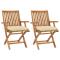Chaises de jardin lot de 2 et coussins blanc crème Teck massifCet élégant ensemble de 2 chaises de jardin en bois présente un design intemporel. Les chaises d'extérieur conviennent à tous les environnements, tels que les maisons, les bureaux, les bars et les cafés, grâce à leur design simple mais élégant. Fabriquée en bois dur de teck extrêmement durable, cette pièce de meuble en teck a été chevronnée, séchée au four puis finement poncée pour lui donner un aspect très lisse. Le bois de teck est connu pour sa résistance exceptionnelle aux intempéries, ce qui le rend bien plus adapté aux meubles de jardin que tout autre type de bois. Le bois de teck est le choix idéal si vous souhaitez acheter un meuble de jardin durable. Ces chaises de patio peuvent être pliées pour économiser de l'espace de rangement lorsqu'elles ne sont pas utilisées. Les coussins d'assise bien rembourrés, le siège incurvé et le dossier offrent également un confort supplémentaire. Maximum 110 kg par siège.