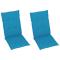 Chaises de jardin lot de 2 et coussins bleu Bois de teckCet ensemble de chaises de jardin en bois est un excellent supplément à votre jardin ou patio. Il est idéal pour vous détendre, discuter avec la famille et les amis ou tout simplement profiter du bon temps. Fabriquée en bois dur de teck extrêmement durable, cette pièce de meuble en teck a été chevronnée, séchée au four puis finement poncée pour lui donner un aspect très lisse. Le bois de teck est connu pour sa résistance exceptionnelle aux intempéries, ce qui le rend bien plus adapté aux meubles de jardin que tout autre type de bois. Le bois de teck est le choix idéal si vous souhaitez acheter une pièce de meubles de jardin durable. Le dossier de la chaise peut être ajusté sur 7 niveaux d'inclinaison, de sorte que vous puissiez toujours trouver la position la plus confortable. La chaise est également légère, ce qui la rend facile à déplacer. La chaise d'extérieur peut également être pliée pour gagner de la place lorsqu'elle n'est pas utilisée. Le coussin inclus est plus qu'un supplément pratique; il a également une fonction décorative. Maximum 110 kg par siège.