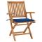 Chaises de jardin lot de 2 et coussins bleu royal Bois de teckCet élégant ensemble de 2 chaises de jardin en bois présente un design intemporel. Les chaises d'extérieur conviennent à tous les environnements, tels que les maisons, les bureaux, les bars et les cafés, grâce à leur design simple mais élégant. Fabriquée en bois dur de teck extrêmement durable, cette pièce de meuble en teck a été chevronnée, séchée au four puis finement poncée pour lui donner un aspect très lisse. Le bois de teck est connu pour sa résistance exceptionnelle aux intempéries, ce qui le rend bien plus adapté aux meubles de jardin que tout autre type de bois. Le bois de teck est le choix idéal si vous souhaitez acheter un meuble de jardin durable. Ces chaises de patio peuvent être pliées pour économiser de l'espace de rangement lorsqu'elles ne sont pas utilisées. Les coussins d'assise inclus, le siège incurvé et le dossier offrent également un confort supplémentaire. Maximum 110 kg par siège.