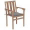 Chaises de jardin lot de 2 et coussins gris Bois de teck massifCet élégant ensemble de 2 chaises de jardin en bois présente un design intemporel. Les chaises d'extérieur conviennent à tous les environnements, tels que les maisons, les bureaux, les bars et les cafés, grâce à leur design simple mais élégant. Fabriquée en bois dur de teck extrêmement durable, cette pièce de meuble en teck a été chevronnée, séchée au four puis finement poncée pour lui donner un aspect très lisse. Le bois de teck est connu pour sa résistance exceptionnelle aux intempéries, ce qui le rend bien plus adapté aux meubles de jardin que tout autre type de bois. Le bois de teck est le choix idéal si vous souhaitez acheter un meuble de jardin durable. Ces chaises de patio sont empilables pour économiser de l'espace de rangement lorsqu'elles ne sont pas utilisées. Le produit est appliqué avec une belle finition pour donner au bois une couleur chaude. Les coussins d'assise inclus offrent également un confort supplémentaire. Maximum 110 kg par siège.