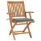 Chaises de jardin lot de 2 et coussins gris Bois de teck massifCet élégant ensemble de 2 chaises de jardin en bois présente un design intemporel. Les chaises d'extérieur conviennent à tous les environnements, tels que les maisons, les bureaux, les bars et les cafés, grâce à leur design simple mais élégant. Fabriquée en bois dur de teck extrêmement durable, cette pièce de meuble en teck a été chevronnée, séchée au four puis finement poncée pour lui donner un aspect très lisse. Le bois de teck est connu pour sa résistance exceptionnelle aux intempéries, ce qui le rend bien plus adapté aux meubles de jardin que tout autre type de bois. Le bois de teck est le choix idéal si vous souhaitez acheter un meuble de jardin durable. Ces chaises de patio peuvent être pliées pour économiser de l'espace de rangement lorsqu'elles ne sont pas utilisées. Les coussins d'assise inclus, le siège incurvé et le dossier offrent également un confort supplémentaire. Maximum 110 kg par siège.
