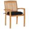 Chaises de jardin lot de 2 et coussins noir Bois de teck massifCes chaises de jardin en bois ajoutent un aspect vintage à votre jardin, patio ou tout autre espace de vie extérieur. Fabriquée en bois dur de teck extrêmement durable, cette pièce de meuble en teck a été chevronnée, séchée au four puis finement poncée pour lui donner un aspect très lisse. Le bois de teck est connu pour sa résistance exceptionnelle aux intempéries, ce qui le rend bien plus adapté aux meubles de jardin que tout autre type de bois. Le bois de teck est le choix idéal si vous souhaitez acheter un meuble de jardin durable. L'ensemble de chaises d'extérieur comprend des dossiers à lattes et des accoudoirs légèrement incurvés, offrant un confort d'assise supplémentaire. Elles sont également empilables pour économiser de l'espace lorsqu'elles ne sont pas utilisées. Les coussins inclus sont pratiques et ont une fonction décorative. Maximum 110 kg par siège. ,