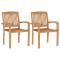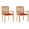 Chaises de jardin lot de 2 et coussins rouge Bois teck massifCes chaises de jardin en bois ajoutent un aspect vintage à votre jardin, patio ou tout autre espace de vie extérieur. Fabriquée en bois dur de teck extrêmement durable, cette pièce de meuble en teck a été chevronnée, séchée au four puis finement poncée pour lui donner un aspect très lisse. Le bois de teck est connu pour sa résistance exceptionnelle aux intempéries, ce qui le rend bien plus adapté aux meubles de jardin que tout autre type de bois. Le bois de teck est le choix idéal si vous souhaitez acheter un meuble de jardin durable. L'ensemble de chaises d'extérieur comprend des dossiers à lattes et des accoudoirs légèrement incurvés, offrant un confort d'assise supplémentaire. Elles sont également empilables pour économiser de l'espace lorsqu'elles ne sont pas utilisées. Les coussins inclus sont pratiques et ont une fonction décorative. Maximum 110 kg par siège.