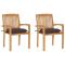 Chaises de jardin lot de 2 et coussins taupe Bois teck massifCes chaises de jardin en bois ajoutent un aspect vintage à votre jardin, patio ou tout autre espace de vie extérieur. Fabriquée en bois dur de teck extrêmement durable, cette pièce de meuble en teck a été chevronnée, séchée au four puis finement poncée pour lui donner un aspect très lisse. Le bois de teck est connu pour sa résistance exceptionnelle aux intempéries, ce qui le rend bien plus adapté aux meubles de jardin que tout autre type de bois. Le bois de teck est le choix idéal si vous souhaitez acheter un meuble de jardin durable. L'ensemble de chaises d'extérieur comprend des dossiers à lattes et des accoudoirs légèrement incurvés, offrant un confort d'assise supplémentaire. Elles sont également empilables pour économiser de l'espace lorsqu'elles ne sont pas utilisées. Les coussins inclus sont pratiques et ont une fonction décorative. Maximum 110 kg par siège. ,