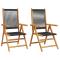 Chaises de jardin lot de 2 noir bois d'acacia et polypropylèneDétendez-vous et profitez de l'extérieur dans ces confortables chaises de jardin ! Robuste et stable : le bois d'acacia massif est connu pour sa solidité et sa durabilité. Ses couleurs variées et ses grains uniques lui confèrent un aspect attrayant. Sa stabilité et sa résistance aux intempéries en font un matériau idéal pour la fabrication de meubles d'intérieur et d'extérieur. Fonction d'inclinaison : le siège de jardin est spécialement conçu avec une fonction d'inclinaison afin que vous puissiez régler le dossier selon votre confort. Facile à transporter et à ranger : la chaise peut être facilement pliée lorsqu'elle n'est pas utilisée, pour un rangement et un transport faciles. Conception pratique : la main courante en bois, pratique et plate, vous permet de poser vos mains dessus tout en profitant d'un moment en plein air. Diverses utilisations : la chaise pliable a un large éventail d'utilisations et peut facilement répondre à vos besoins dans n'importe quel environnement extérieur, comme les jardins, les patios, les balcons, etc. Bon à savoir : Pour que vos meubles d'extérieur restent beaux, nous vous recommandons de les protéger avec une housse imperméable. Maximum 110 kg par siège. ,