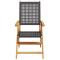 Chaises de jardin lot de 2 noir bois massif d'acacia et rotinDétendez-vous et profitez de l'extérieur dans ces confortables chaises de jardin ! Robuste et stable : le bois d'acacia massif est connu pour sa solidité et sa durabilité. Ses couleurs variées et ses grains uniques lui confèrent un aspect attrayant. Sa stabilité et sa résistance aux intempéries en font un matériau idéal pour la fabrication de meubles d'intérieur et d'extérieur. Matériau durable : la résine tressée, également connue sous le nom de poly rotin, est un matériau synthétique solide et nécessitant peu d'entretien qui ressemble au rotin naturel. Il est léger, facile à nettoyer et couramment utilisé pour les meubles d'extérieur en raison de sa durabilité et de ses propriétés de résistance aux intempéries. Fonction d'inclinaison : le siège de jardin est spécialement conçu avec une fonction d'inclinaison afin que vous puissiez régler le dossier selon votre confort. Facile à transporter et à ranger : la chaise peut être facilement pliée lorsqu'elle n'est pas utilisée, pour un rangement et un transport faciles. Conception pratique : la main courante en bois, pratique et plate, vous permet de poser vos mains dessus tout en profitant d'un moment en plein air. Bon à savoir : Pour que vos meubles d'extérieur restent beaux, nous vous recommandons de les protéger avec une housse imperméable. Maximum 110 kg par siège. ,