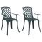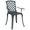 Chaises de jardin lot de 2 vert aluminium couléCes chaises de jardin, fabriquées en fonte d'aluminium, offrent une expérience d'assise confortable pour vous et vos invités. Matériau durable : ces chaises de jardin sont fabriquées en fonte d'aluminium, un matériau durable, léger et nécessitant peu d'entretien, résistant à la corrosion et à la décoloration. Une expérience d'assise confortable : dotée d'accoudoirs et d'un dossier, la chaise d'extérieur vous offre un confort optimal. Nombreuses utilisations : ces chaises de jardin peuvent être utilisées comme chaises longues dans le jardin ou sur le balcon. Maximum 110 kg par siège.