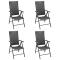 Chaises de jardin lot de 4 Résine tressée NoirCes chaises de jardin sont parfaites pour une utilisation dans votre jardin, sur votre terrasse ou patio. Les chaises sont fabriquées en résine tressée, ce qui les rend durables et résistantes aux intempéries. Les cadres en aluminium enduit de poudre rendent les chaises très robustes. Les dossiers des chaises disposent de 7 réglages inclinables, de sorte que vous puissiez toujours trouver la position assise la plus confortable. En outre, les chaises peuvent être pliées pour économiser de l'espace lorsqu'elles ne sont pas utilisées. Maximum 110 kg par siège. ,