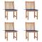 Chaises de jardin lot de 4 avec coussins Bois de teck massifCet ensemble de chaises de jardin en bois robuste sera un endroit idéal pour vous détendre et profiter du soleil dans votre jardin ou patio. Fabriquée en bois dur de teck extrêmement durable, cette pièce de meuble en teck a été chevronnée, séchée au four puis finement poncée pour lui donner un aspect très lisse. Le bois de teck est connu pour sa résistance exceptionnelle aux intempéries, ce qui le rend bien plus adapté aux meubles de jardin que tout autre type de bois. Le bois de teck est le choix idéal si vous souhaitez acheter un meuble de jardin durable. Une belle finition à base d'eau est appliquée pour donner au bois une couleur chaude. Les chaises d'extérieur stables disposent d'un aspect raffiné qui peut instantanément se fondre dans n'importe quel espace de vie. Le coussin inclus est pratique et a une fonction décorative. Remarque : Afin de prolonger la durée de vie de vos meubles d'extérieur, nous vous recommandons de les nettoyer régulièrement et de ne pas les laisser à l'extérieur sans protection inutilement. Nettoyage : Utiliser une solution savonneuse douce Stockage : Si possible, stockez dans un endroit frais et sec à l'intérieur. Si le produit est stocké à l'extérieur, protégez-le avec une housse imperméable. Essuyez et séchez l'excès d'eau ou de neige des surfaces planes après la pluie ou une chute de neige. Permettez une circulation d'air suffisante afin d'éviter les dommages liés à l'humidité. Maximum 110 kg par siège. ,