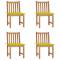 Chaises de jardin lot de 4 avec coussins Bois de teck massifCet ensemble de chaises de jardin en bois robuste sera un endroit idéal pour vous détendre et profiter du soleil dans votre jardin ou patio. Fabriquée en bois dur de teck extrêmement durable, cette pièce de meuble en teck a été chevronnée, séchée au four puis finement poncée pour lui donner un aspect très lisse. Le bois de teck est connu pour sa résistance exceptionnelle aux intempéries, ce qui le rend bien plus adapté aux meubles de jardin que tout autre type de bois. Le bois de teck est le choix idéal si vous souhaitez acheter un meuble de jardin durable. Une belle finition à base d'eau est appliquée pour donner au bois une couleur chaude. Les chaises d'extérieur stables disposent d'un aspect raffiné qui peut instantanément se fondre dans n'importe quel espace de vie. Le coussin inclus est pratique et a une fonction décorative. Remarque : Afin de prolonger la durée de vie de vos meubles d'extérieur, nous vous recommandons de les nettoyer régulièrement et de ne pas les laisser à l'extérieur sans protection inutilement. Nettoyage : Utiliser une solution savonneuse douce Stockage : Si possible, stockez dans un endroit frais et sec à l'intérieur. Si le produit est stocké à l'extérieur, protégez-le avec une housse imperméable. Essuyez et séchez l'excès d'eau ou de neige des surfaces planes après la pluie ou une chute de neige. Permettez une circulation d'air suffisante afin d'éviter les dommages liés à l'humidité. Maximum 110 kg par siège.