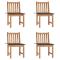 Chaises de jardin lot de 4 avec coussins Bois de teck massifCet ensemble de chaises de jardin en bois robuste sera un endroit idéal pour vous détendre et profiter du soleil dans votre jardin ou patio. Fabriquée en bois dur de teck extrêmement durable, cette pièce de meuble en teck a été chevronnée, séchée au four puis finement poncée pour lui donner un aspect très lisse. Le bois de teck est connu pour sa résistance exceptionnelle aux intempéries, ce qui le rend bien plus adapté aux meubles de jardin que tout autre type de bois. Le bois de teck est le choix idéal si vous souhaitez acheter un meuble de jardin durable. Une belle finition à base d'eau est appliquée pour donner au bois une couleur chaude. Les chaises d'extérieur stables disposent d'un aspect raffiné qui peut instantanément se fondre dans n'importe quel espace de vie. Le coussin inclus est pratique et a une fonction décorative. Remarque : Afin de prolonger la durée de vie de vos meubles d'extérieur, nous vous recommandons de les nettoyer régulièrement et de ne pas les laisser à l'extérieur sans protection inutilement. Nettoyage : Utiliser une solution savonneuse douce Stockage : Si possible, stockez dans un endroit frais et sec à l'intérieur. Si le produit est stocké à l'extérieur, protégez-le avec une housse imperméable. Essuyez et séchez l'excès d'eau ou de neige des surfaces planes après la pluie ou une chute de neige. Permettez une circulation d'air suffisante afin d'éviter les dommages liés à l'humidité. Maximum 110 kg par siège. ,