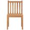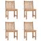 Chaises de jardin lot de 4 avec coussins Bois de teck massifCet ensemble de chaises de jardin en bois robuste sera un endroit idéal pour vous détendre et profiter du soleil dans votre jardin ou patio. Fabriquée en bois dur de teck extrêmement durable, cette pièce de meuble en teck a été chevronnée, séchée au four puis finement poncée pour lui donner un aspect très lisse. Le bois de teck est connu pour sa résistance exceptionnelle aux intempéries, ce qui le rend bien plus adapté aux meubles de jardin que tout autre type de bois. Le bois de teck est le choix idéal si vous souhaitez acheter un meuble de jardin durable. Une belle finition à base d'eau est appliquée pour donner au bois une couleur chaude. Les chaises d'extérieur stables disposent d'un aspect raffiné qui peut instantanément se fondre dans n'importe quel espace de vie. Le coussin inclus est pratique et a une fonction décorative. Remarque : Afin de prolonger la durée de vie de vos meubles d'extérieur, nous vous recommandons de les nettoyer régulièrement et de ne pas les laisser à l'extérieur sans protection inutilement. Nettoyage : Utiliser une solution savonneuse douce Stockage : Si possible, stockez dans un endroit frais et sec à l'intérieur. Si le produit est stocké à l'extérieur, protégez-le avec une housse imperméable. Essuyez et séchez l'excès d'eau ou de neige des surfaces planes après la pluie ou une chute de neige. Permettez une circulation d'air suffisante afin d'éviter les dommages liés à l'humidité. Maximum 110 kg par siège.