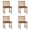 Chaises de jardin lot de 4 avec coussins Bois de teck massifCet ensemble de chaises de jardin en bois robuste sera un endroit idéal pour vous détendre et profiter du soleil dans votre jardin ou patio. Fabriquée en bois dur de teck extrêmement durable, cette pièce de meuble en teck a été chevronnée, séchée au four puis finement poncée pour lui donner un aspect très lisse. Le bois de teck est connu pour sa résistance exceptionnelle aux intempéries, ce qui le rend bien plus adapté aux meubles de jardin que tout autre type de bois. Le bois de teck est le choix idéal si vous souhaitez acheter un meuble de jardin durable. Une belle finition à base d'eau est appliquée pour donner au bois une couleur chaude. Les chaises d'extérieur stables disposent d'un aspect raffiné qui peut instantanément se fondre dans n'importe quel espace de vie. Le coussin inclus est pratique et a une fonction décorative. Remarque : Afin de prolonger la durée de vie de vos meubles d'extérieur, nous vous recommandons de les nettoyer régulièrement et de ne pas les laisser à l'extérieur sans protection inutilement. Nettoyage : Utiliser une solution savonneuse douce Stockage : Si possible, stockez dans un endroit frais et sec à l'intérieur. Si le produit est stocké à l'extérieur, protégez-le avec une housse imperméable. Essuyez et séchez l'excès d'eau ou de neige des surfaces planes après la pluie ou une chute de neige. Permettez une circulation d'air suffisante afin d'éviter les dommages liés à l'humidité. Maximum 110 kg par siège. ,