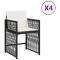 Chaises de jardin lot de 4 avec coussins noir résine tresséeDétendez-vous et profitez de l'extérieur dans ces confortables chaises de jardin ! Matériau durable : la résine tressée, également connue sous le nom de poly rotin, est un matériau synthétique solide et nécessitant peu d'entretien qui ressemble au rotin naturel. Il est léger, facile à nettoyer et couramment utilisé pour les meubles d'extérieur en raison de sa durabilité et de ses propriétés de résistance aux intempéries. Expérience d'assise confortable : ce mobilier d'extérieur, doté de coussins épais, offre une expérience d'assise confortable. Dossier rabattable : ces chaises sont dotées d'un dossier à rabat qui peut être rabattu pour un rangement compact. Housse amovible et lavable : ces coussins sont dotés de housses amovibles pour un lavage et un entretien faciles. Les housses de coussin de chaise ont un rabat à l'arrière pour une fixation facile aux chaises. Cadre robuste et stable : le cadre en acier enduit de poudre assure la solidité et la stabilité du meuble de jardin pour une utilisation quotidienne à l'extérieur. Bon à savoir : Pour que vos meubles d'extérieur restent beaux, nous vous recommandons de les protéger avec une housse imperméable. ,
